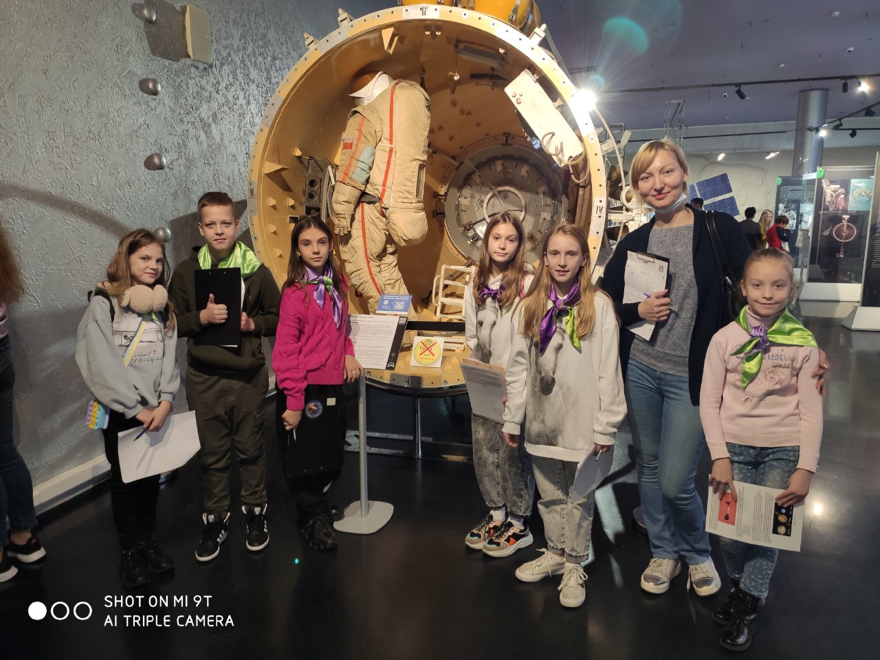 В 11:45 часов 16 октября 2021 года воспитанники 5К кадетского класса прибыли на Аллею Космонавтов к подножию монумента «Покорителям космоса». В основании монумента находится стилобат, внутри которого расположился Музей космонавтики. Не каждая мировая столица может похвастаться наличием музея подобного рода. Оттава в Канаде, Париж во Франции, Гонконг в Китае и наша столица Москва - вот ограниченный перечень городов, обладателей музеев космической тематики.