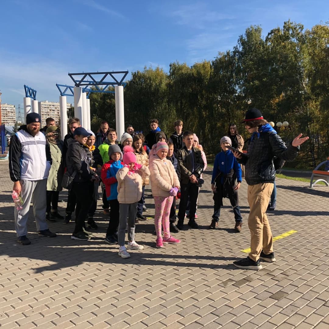 По пути к парку ученик 9а класса Лев Петров провел авторскую экскурсию по району, показав самые интересные достопримечательности и рассказав необычные исторические факты.