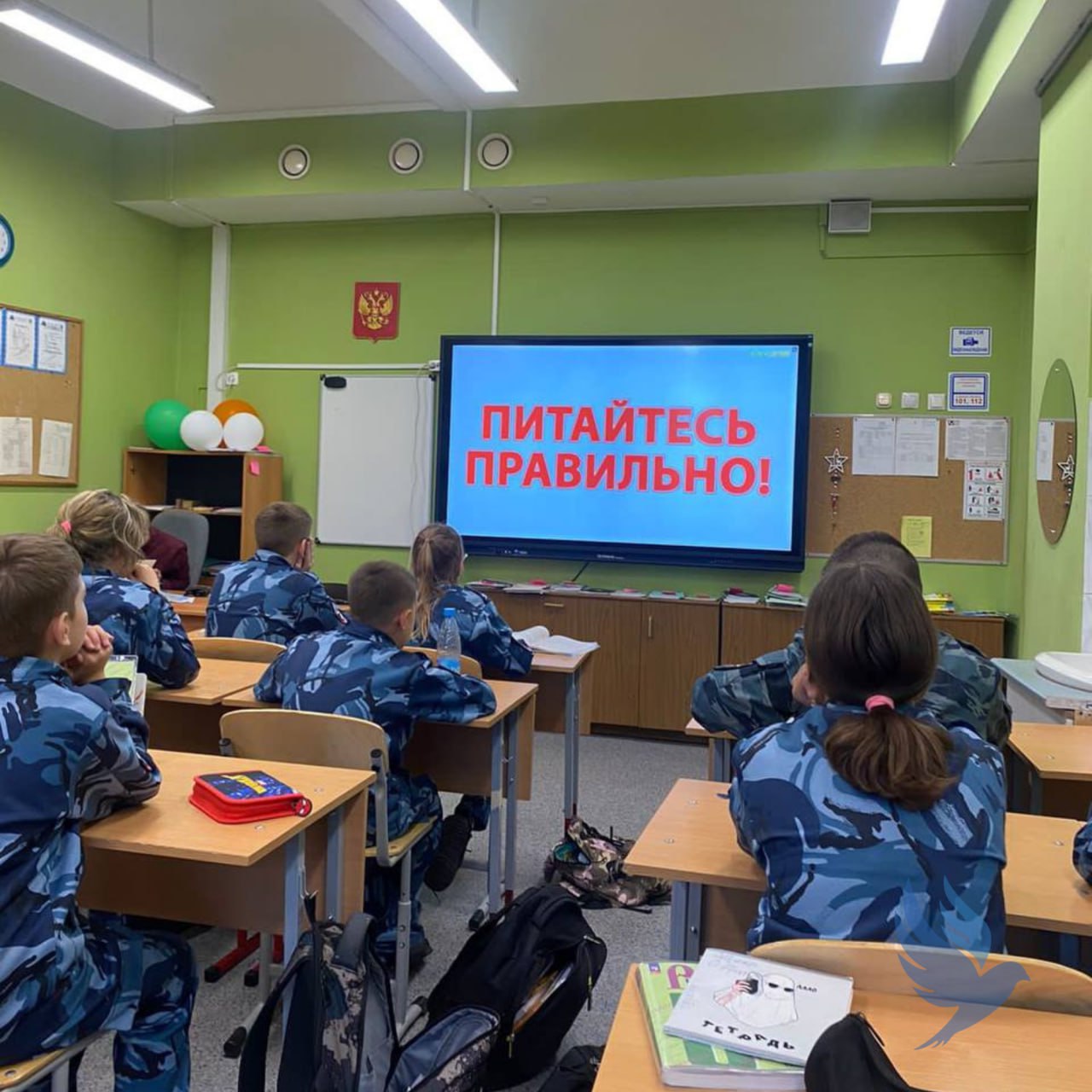 11 октября в рамках проведения Недели здоровья с воспитанниками 5 К класса был проведен классный час на тему «Здоровое питание». В ходе мероприятия была проведена беседа о том, какие продукты больше всего употребляют дети, чем они могут быть вредны для здоровья, как нужно правильно питаться и вести здоровый образ жизни с раннего возраста. В конце беседы ученикам был продемонстрирован учебный фильм о здоровом образе жизни и правильном питании, а также о последствиях употребления в пищу вредных для организма продуктов. Многие дети действительно задумались о том, что они едят и решили пересмотреть свой рацион