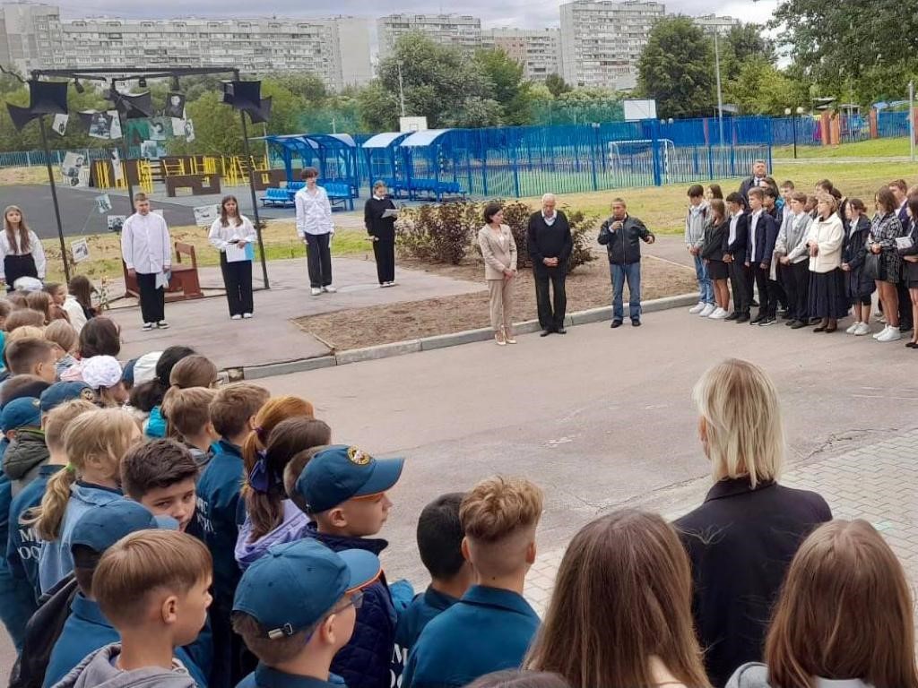 Перед детьми выступили директор школы, заместитель председателя Управляющего совета и почётный гость – председатель президиума совета ветеранов района Северное Бутово Владимир Иванович Лазарев.