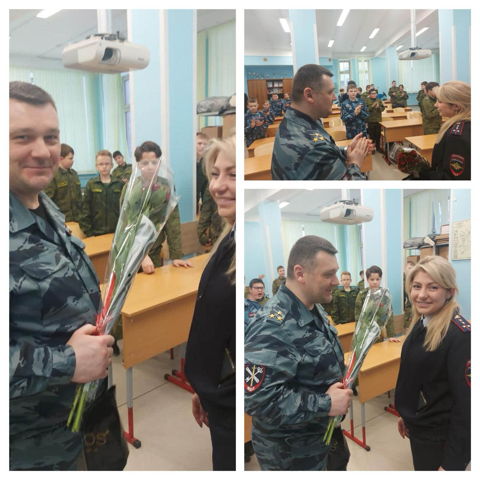 По завершении встречи ученики поздравили представителя органов внутренних дел с Днем образования Московской полиции, подарили праздничный букет и пригласили на торжественное чаепитие.