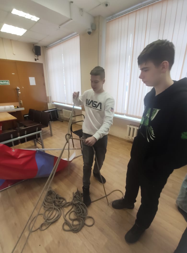Мы научились вязать пожарные узлы номер 1, 2, 3, 4 предназначенные для закрепления спасательной веревки за конструкцию.