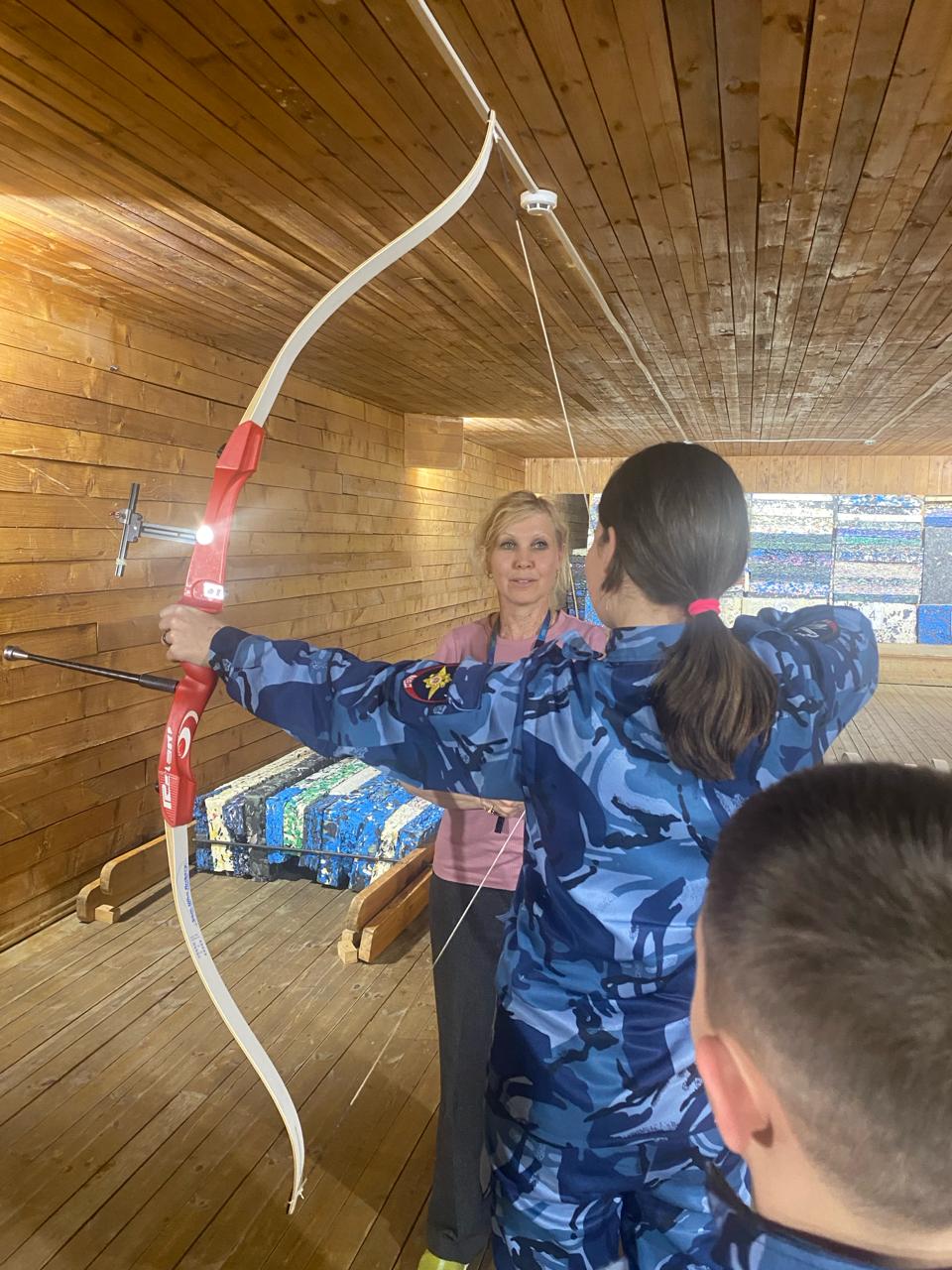 Кроме того, учащиеся смогли подержать настоящий спортивный лук, натянуть тетеву и задержать ее в натянутом положении, что не всегда удается даже взрослому человеку! Ведь сила натяжения современных спортивных луков лежит в пределах от 14 до 30 килограмм!