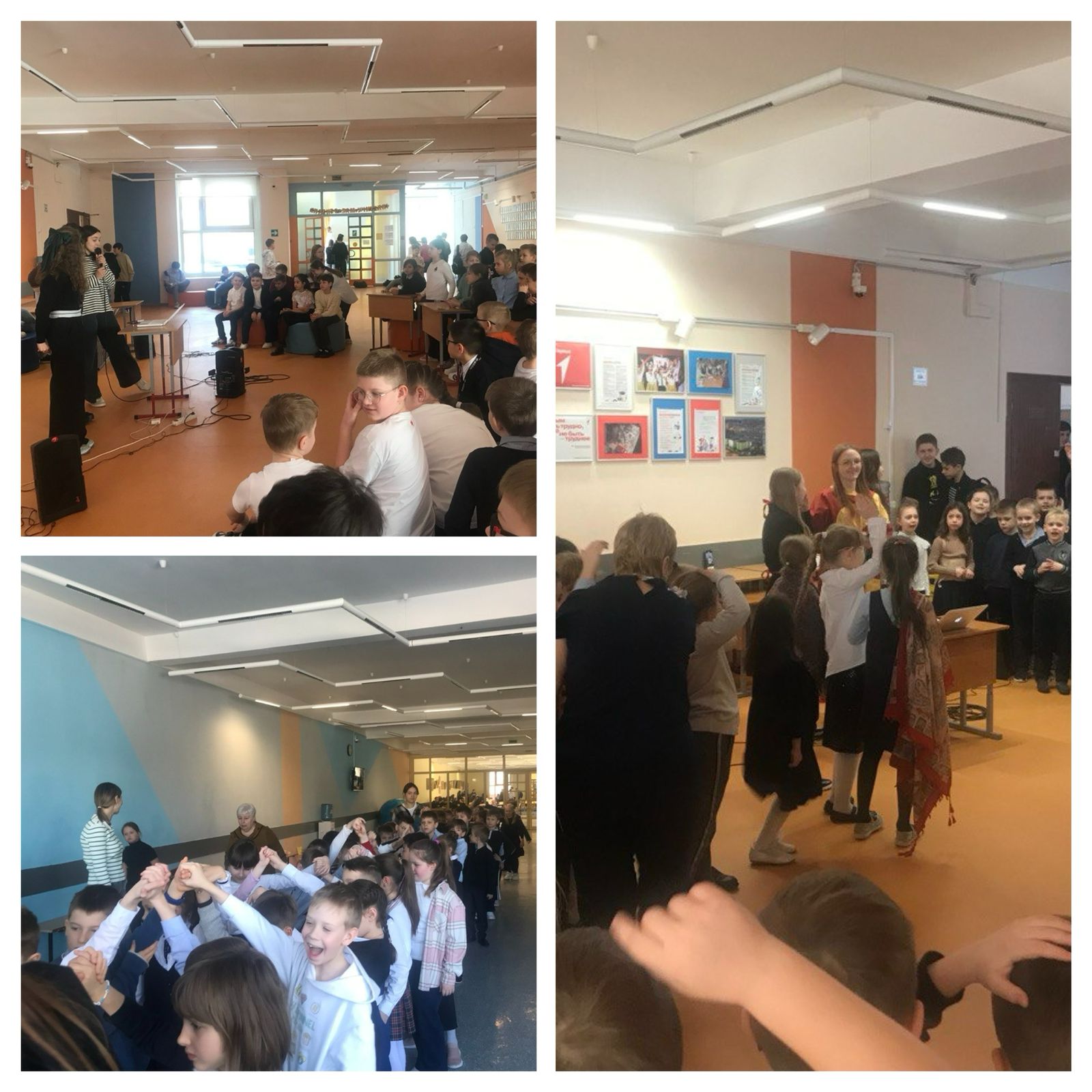 Ребята из ученического совета проводили активные перемены. В масленичных гуляниях приняли участие ученики 1–11 классов, которые участвовали в веселых конкурсах, водили хороводы, отгадывали загадки. Закончились гуляния музыкальным номером от учеников 8 и 10 класса – Ромы и Валерии. Повсюду царила атмосфера радости и веселья.