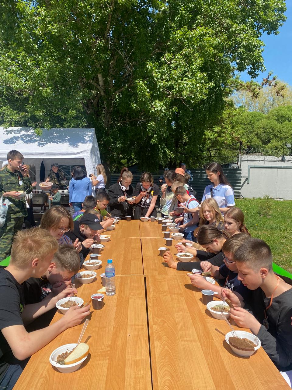 Посещение воинского подразделения никогда не обходится без обеда. Не стал исключением и наш сегодняшний визит в полицейское подразделение. Ребят накормили солдатской кашей из полевой кухни, угостили наваристым и ароматным компотом, а на десерт предложили мороженое от которого никто не смог отказаться.
