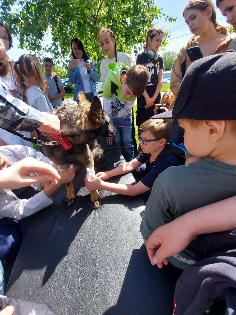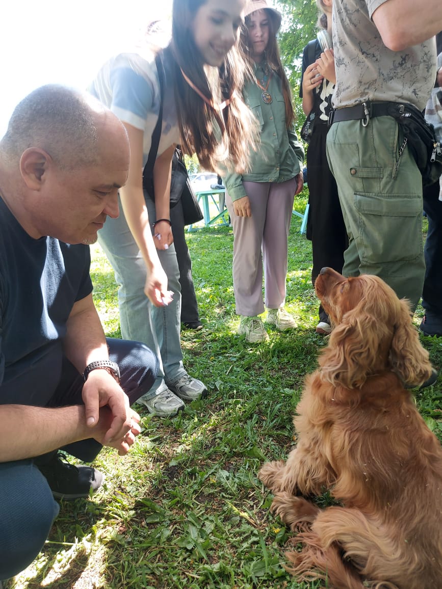 После демонстрации возможностей своих воспитанников, кинологи предложили ребятам попробовать свои силы в дрессировке. Тут нам нужно многому учиться. Но главное, у многих юных "дрессировщиков" горели глаза и желание проявить себя в новом деле было не отнять.