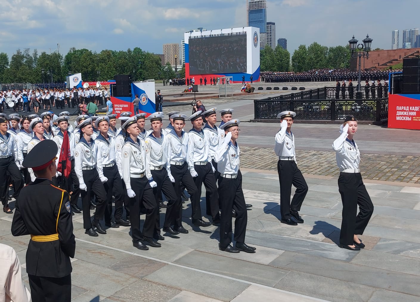 На Поклонной горе парадным строем одновременно прошли 44 кадетских