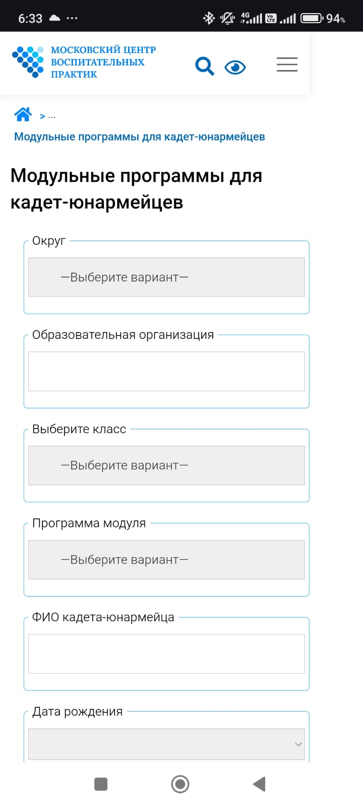 Ссылка на регистрацию: https://mcvp.ru/city_events/gorodskie-proekty/patrioticheskie-proekty/meropriyatiya-otdela-razvitiya-kadetskogo-dvizheniya/modulnye-programmy-dlya-kadet-yunarmejczev
