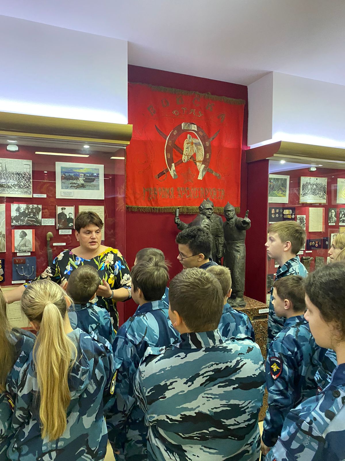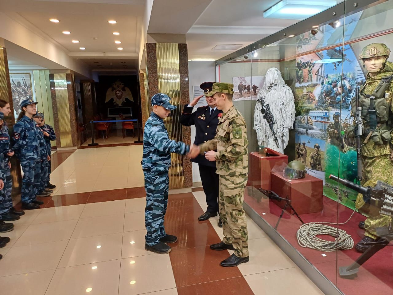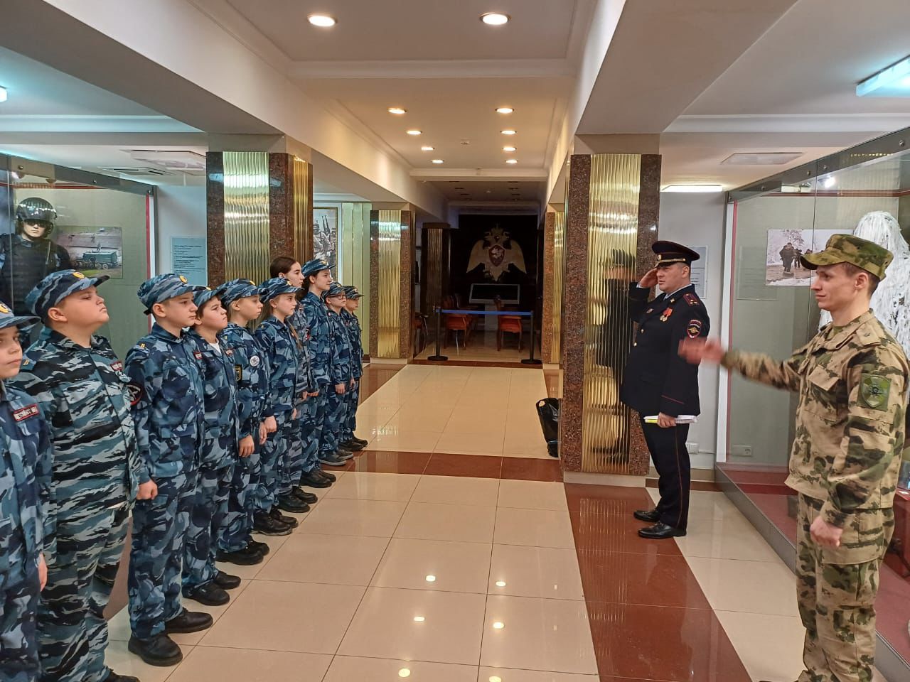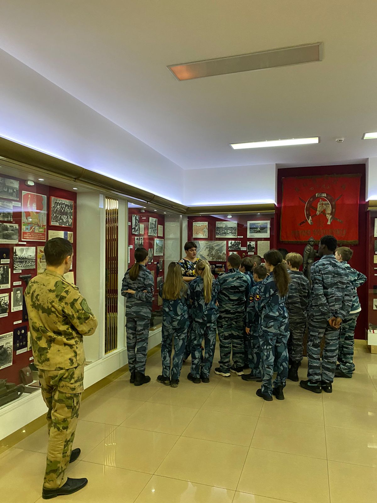 В музее достаточно большая экспозиция, расположенная на двух этажах. На первом - ребята прослушали рассказ об истории войск правопорядка, а на втором – познакомились с современным состоянием Росгвардии, с её организацией и структурой, а также посетили Зал Славы.