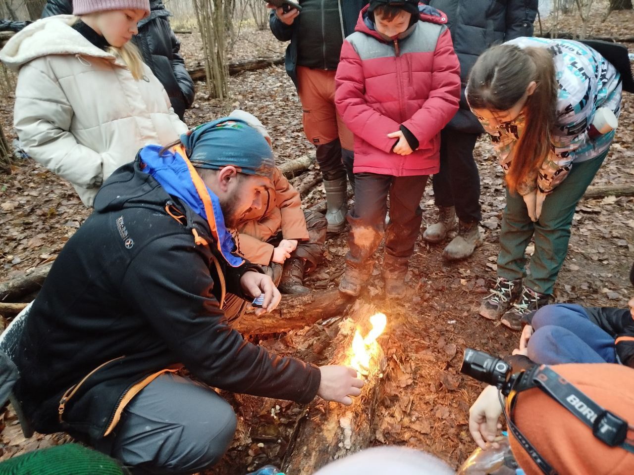 Ребята 3-7 классов получили возможность разжечь свои огоньки в условиях мокрого леса. С задачей справились все. Также, участники научились делать свой собственный розжиг для костра, который намного эффективнее и дешевле покупного.