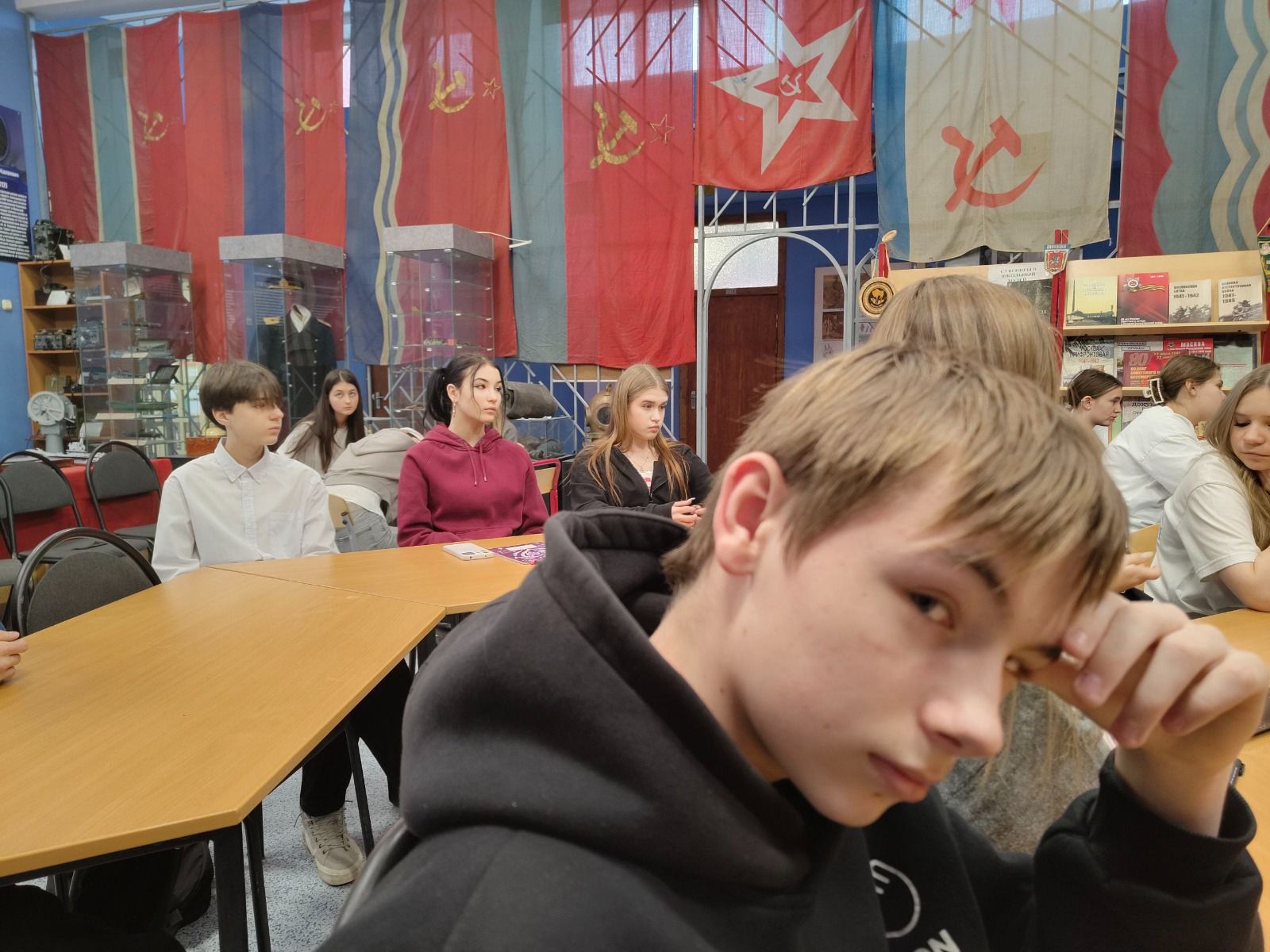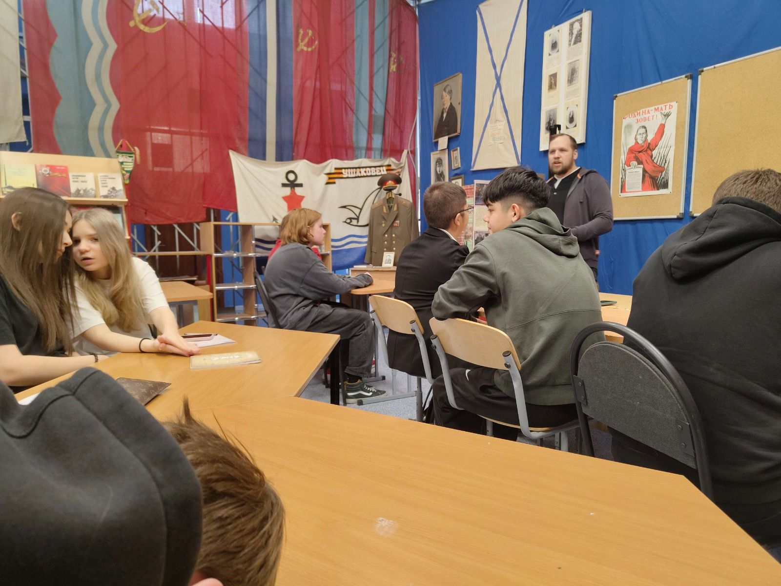 С восьмиклассниками обсудили и другие тезисы. Например, что героизм – это не только про войну. Или, что можно выбрать героя для себя и равняться на него – ведь звание Героя присваивается военным, спасателям, космонавтам, исследователям, а также за достижения в труде и материнстве.