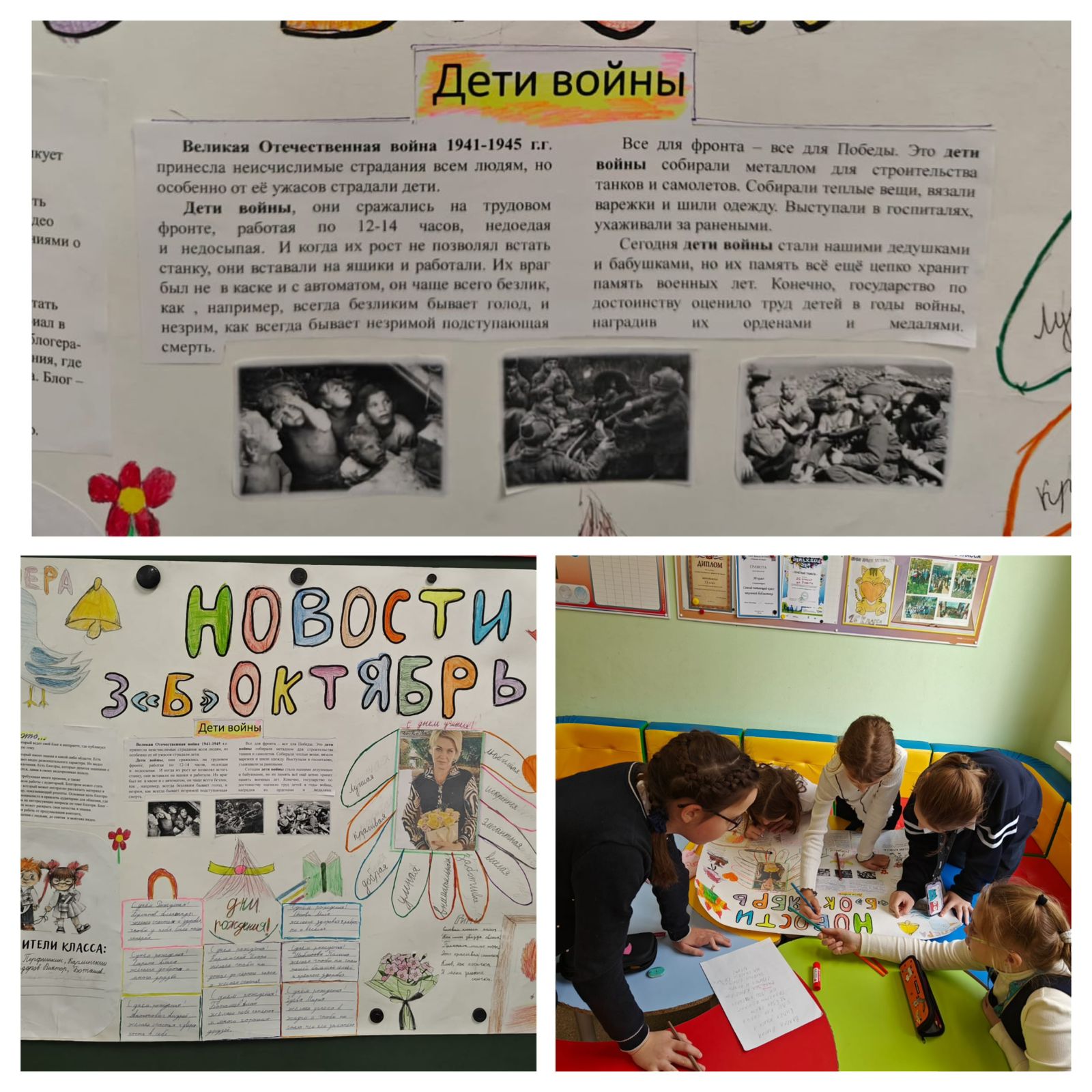 Ученики разместили статью в классной газете, в которой раскрыли жизнь тех детей, переживших ужасные события войны. В статье были описаны их испытания, мечты и надежды, а также то, как они помогали своим семьям и стране в трудные времена.