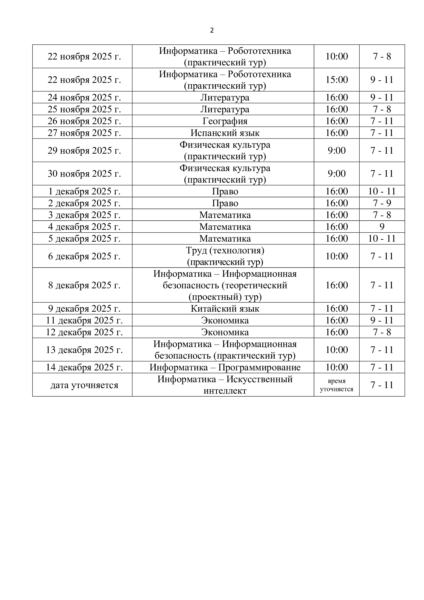 Проект графика проведения Муниципального этапа ВсОШ 09.10.2025