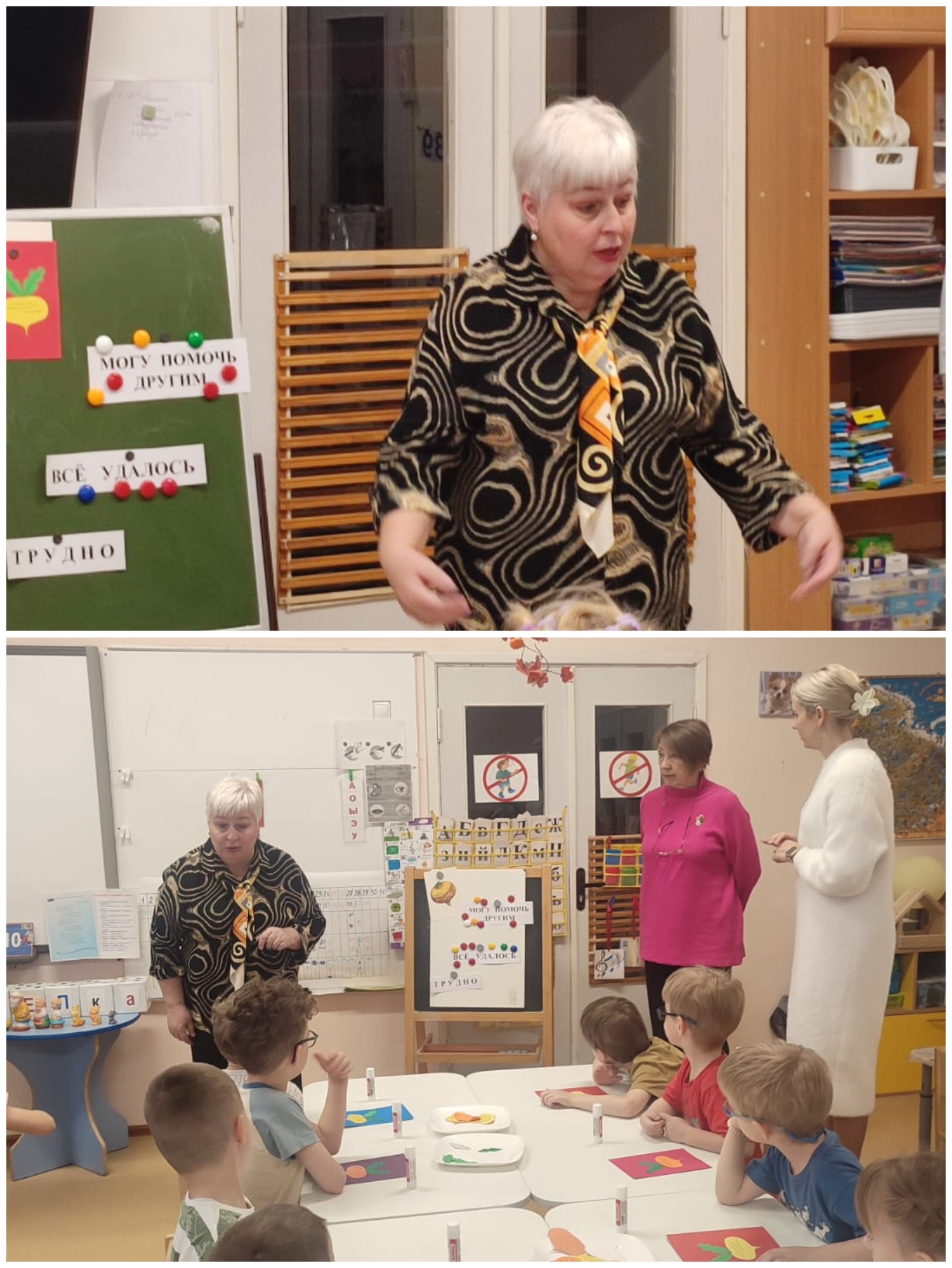 Это был приход не просто гостей, а организация совместного занятия с детьми. Это был по-настоящему сказочный день. Дети погрузились в русскую народную сказку "Репка". Отгадывали загадки, составляли слово из букв на волшебных кубиках, вспомнили всех героев сказки, помогали героям выполнять задания, одновременно воспроизводить и озвучивать содержание самой сказки со сказочными куклами. Восторг и эмоции переполняли детей! Закончилось занятие выполнением работы своими руками из бумаги и пластилина на выбор детей (аппликация "Репка", лепка репки).