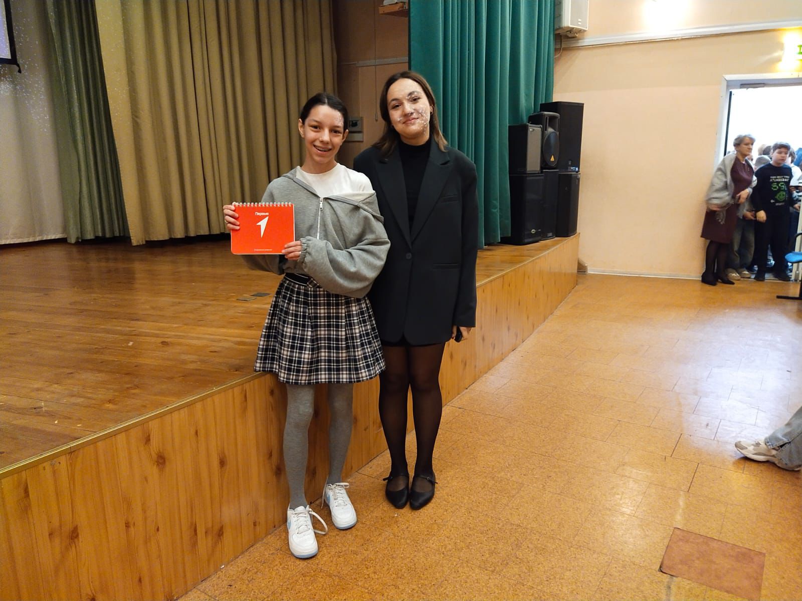 Победителем в этом мини-конкурсе стала ученица 7 «Л» класса Арина. В качестве награды она получила календарь «Движения Первых» из лимитированной коллекции, который включает заметки, интересные интерактивы, а также вопросы для самопознания и постановки целей.