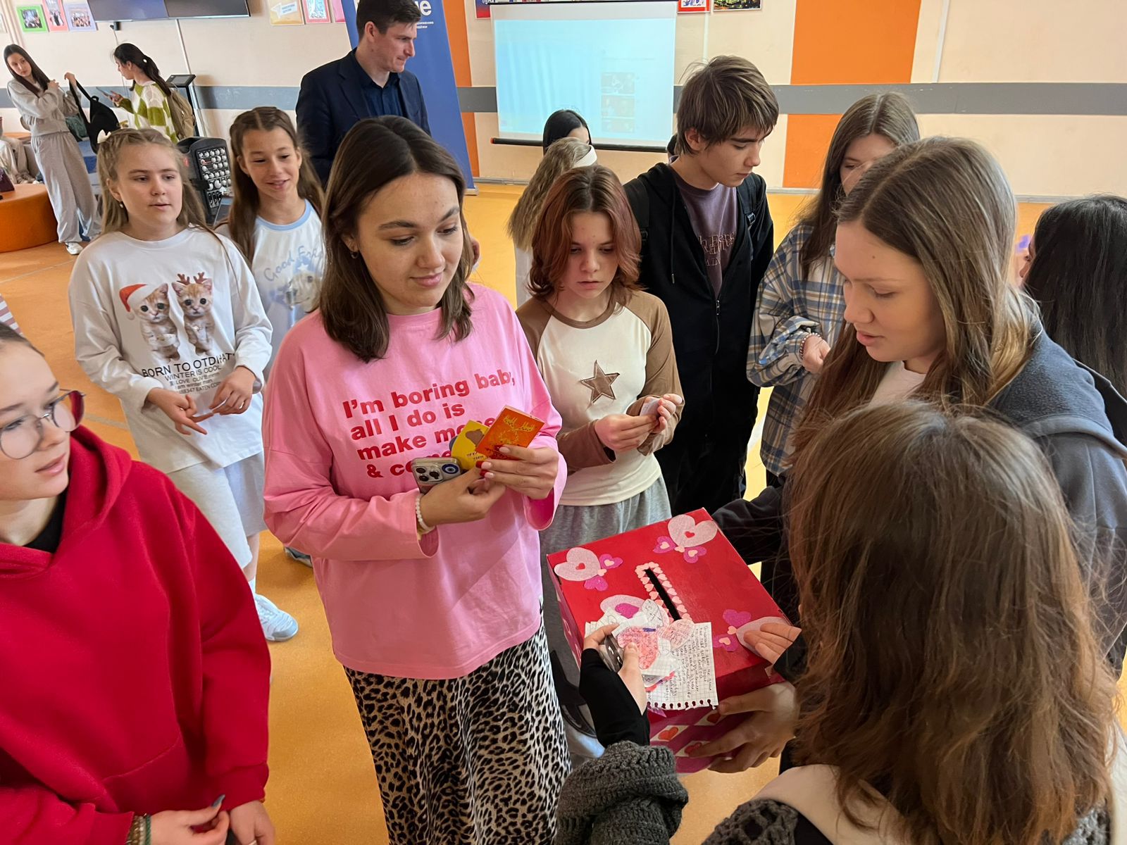 В рамках акции ученики могли написать теплые слова и признания своим друзьям, учителям! Каждый получил возможность оставить записку с комплиментом или добрым пожеланием в специальном ящике, который был установлен в холле школы.