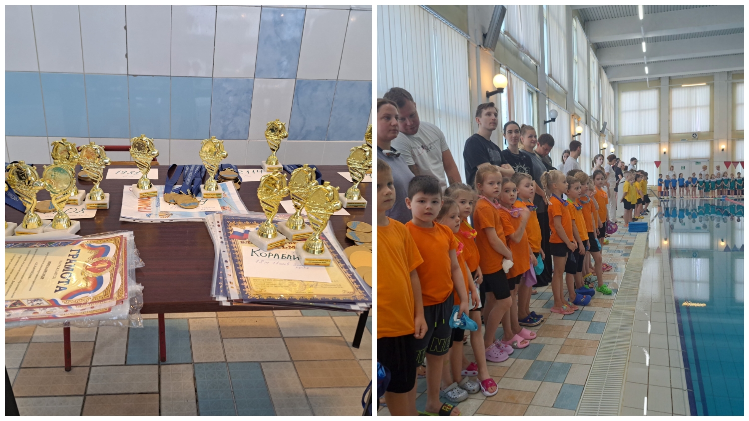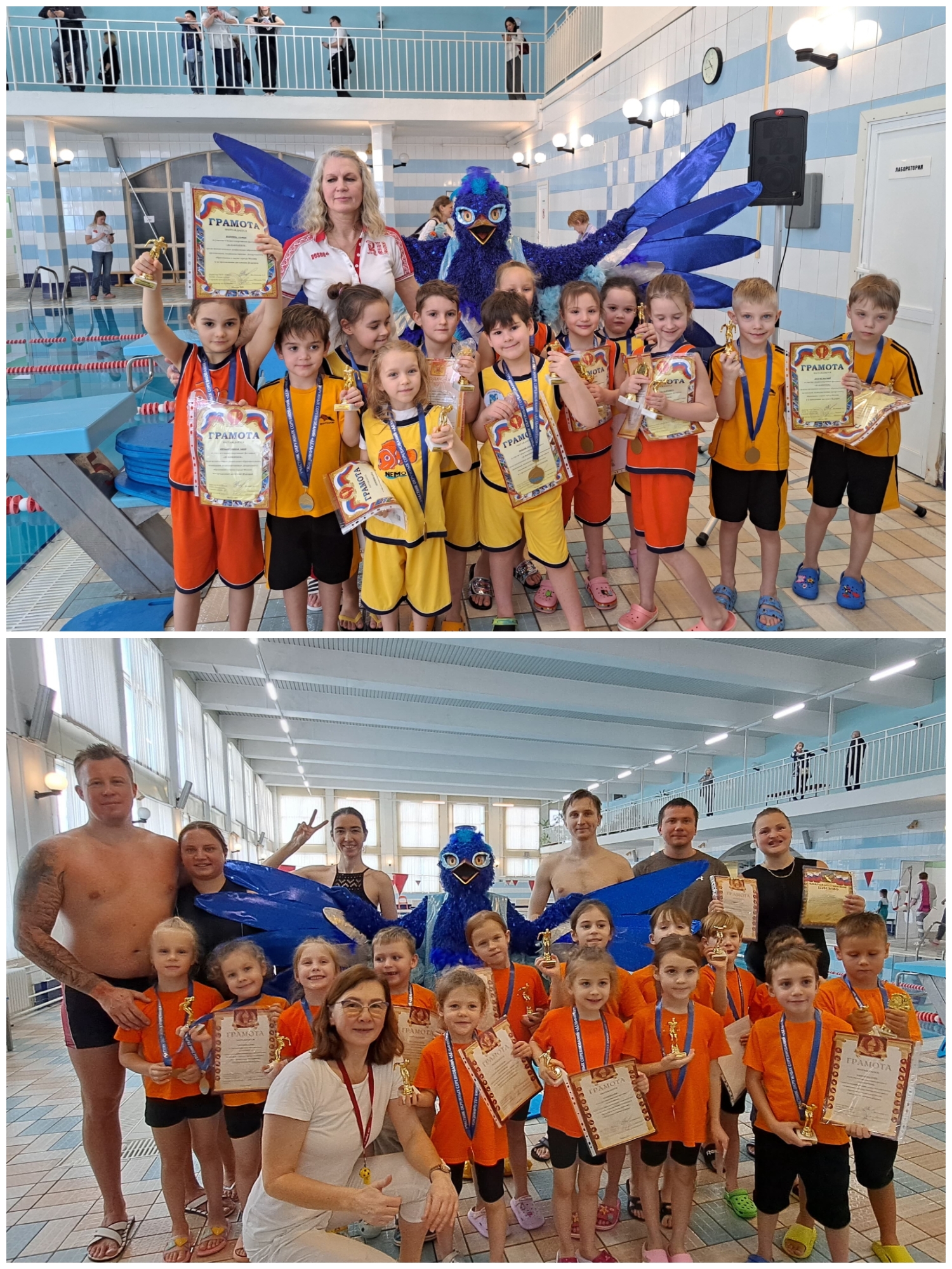 По результатам соревнований детские команды дошкольных отделений "Кораблик" и "Радуга" заняли 2 и 3 место! А семейная команда Крыловых - стала победителем эстафетного плавания среди семейных команд. Стоит отметить семейные команды Герасимовых и Мерц, которые заняли соответственно 2 и 3 место, и менее чем секунду от третьего места остановилась команда Шадриных! Вот такая борьба среди 11 семейных команд! МОЛОДЦЫ!!!!