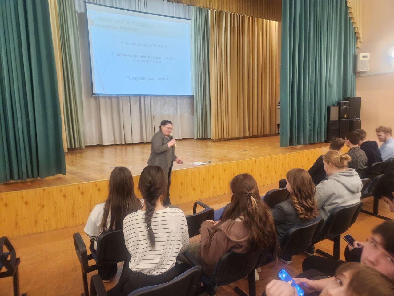 На лекции ребята узнали, что такое проектный и ландшафтный дизайн, познакомились с педагогами колледжа и задали интересующие их вопросы.