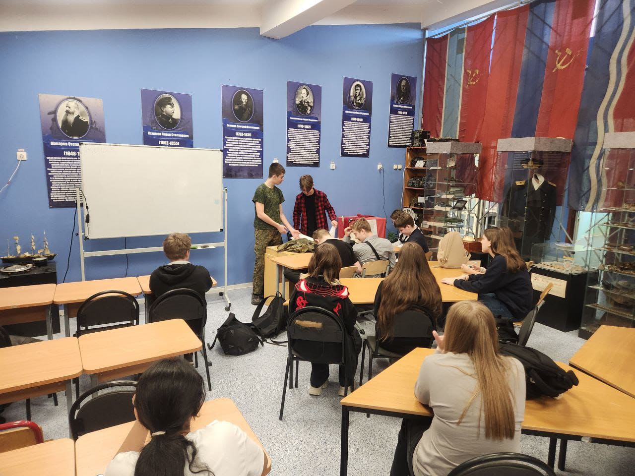 В рамках Дня самоуправления в нашем музее воспитанниками кадетских классов Кириллом из 6 «К» класса и Кириллом из 7 «К» класса для учеников 7 «У» был проведен тематический урок о Запорожских казаках и их предводителе Богдане Хмельницком. Ребята узнали много нового о судьбе казаков и Запорожской земли, интригах европейских правителей, а также о значении присоединения этих земель для настоящего и будущего России.