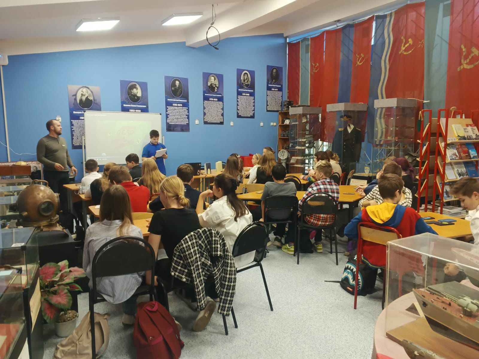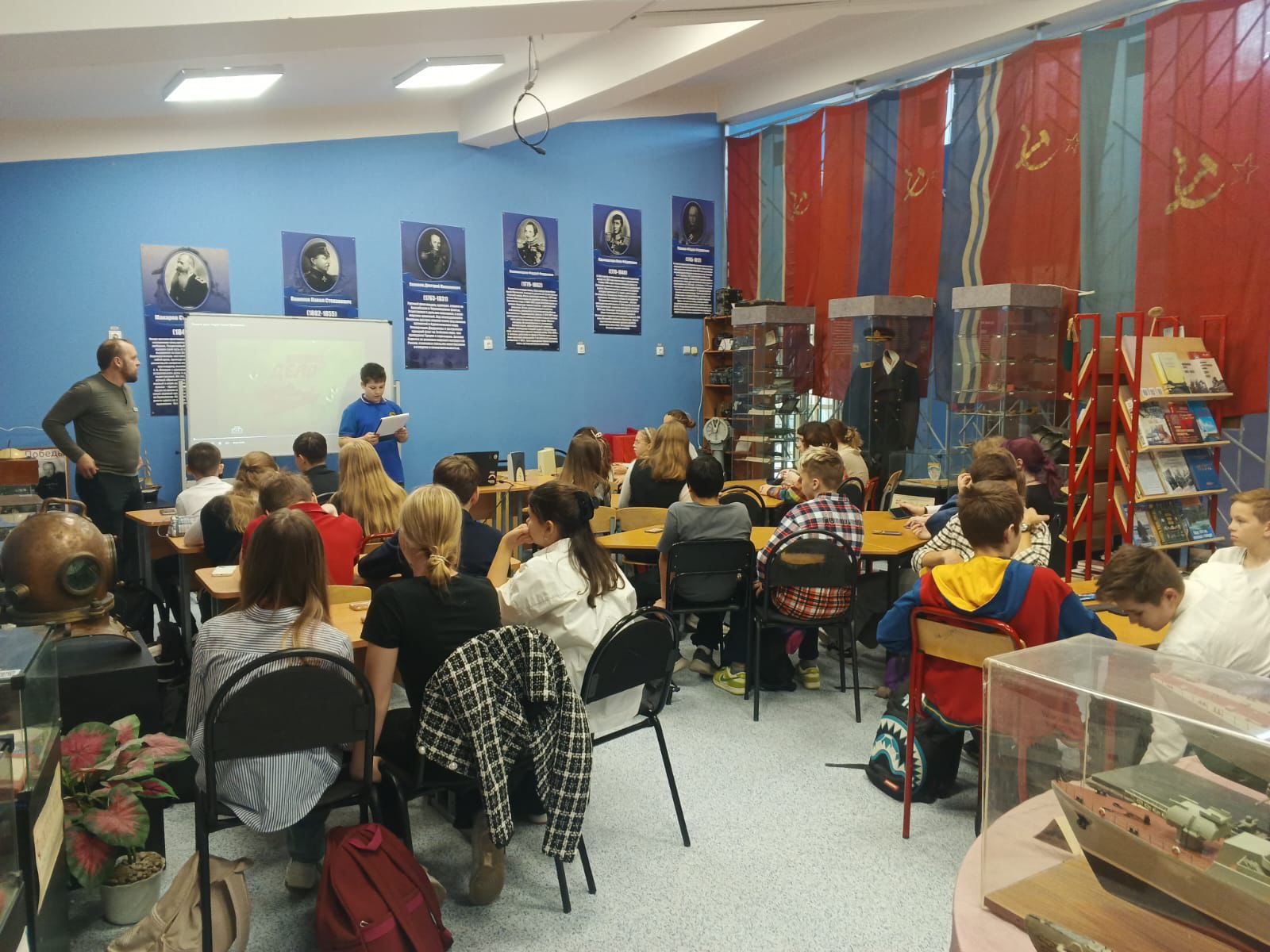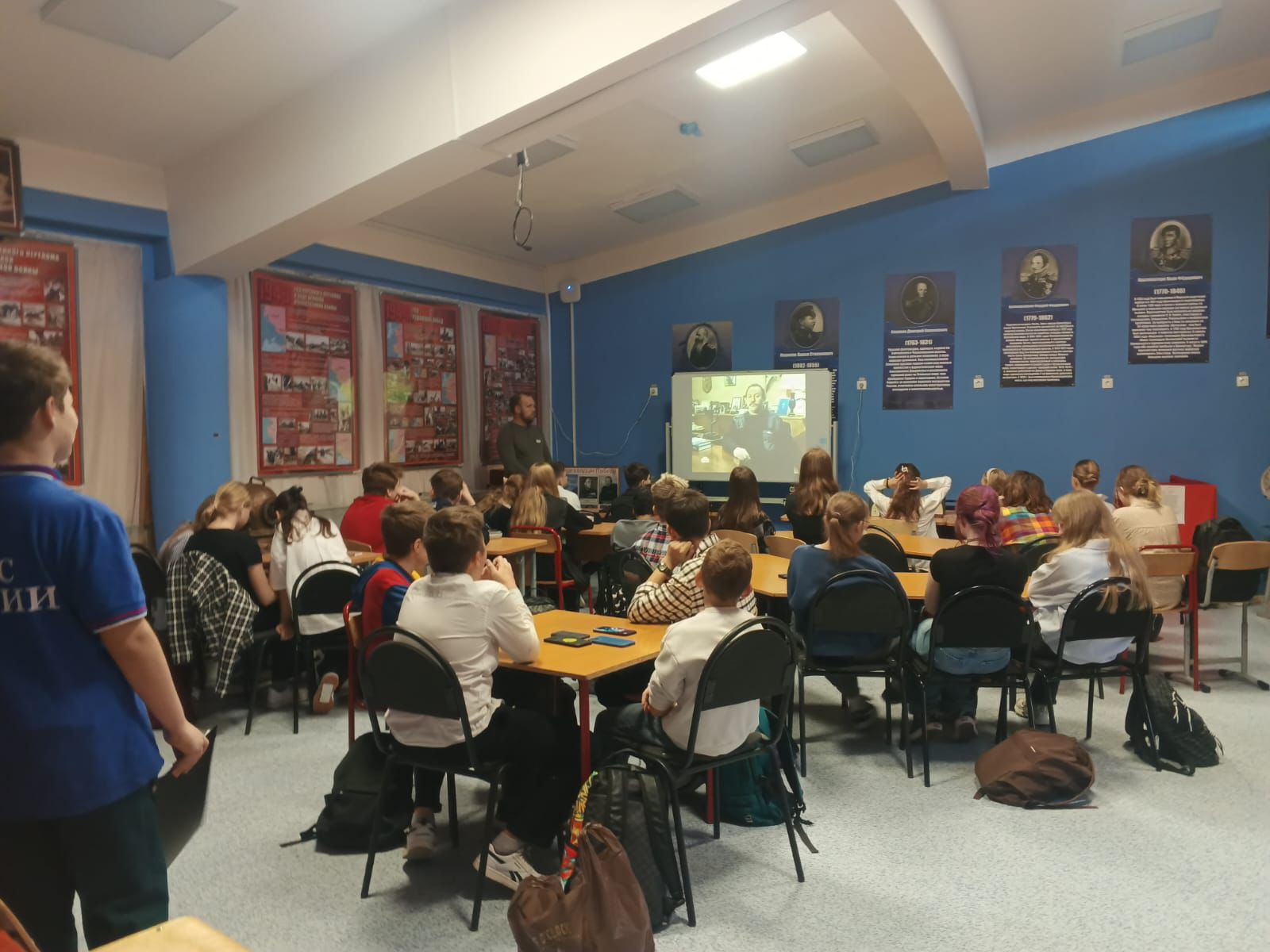 Урок проводили члены музейного актива и воспитанники 6 кадетского класса: Михаил и Олег. На примере подвига Сергея Преминина они рассказали ученикам 7 «Л» класса, что невозможно заставить человека совершить подвиг, и что долг, самопожертвование и патриотизм — категории внутренние, и что эти качества должны воспитываться в человеке с раннего детства.