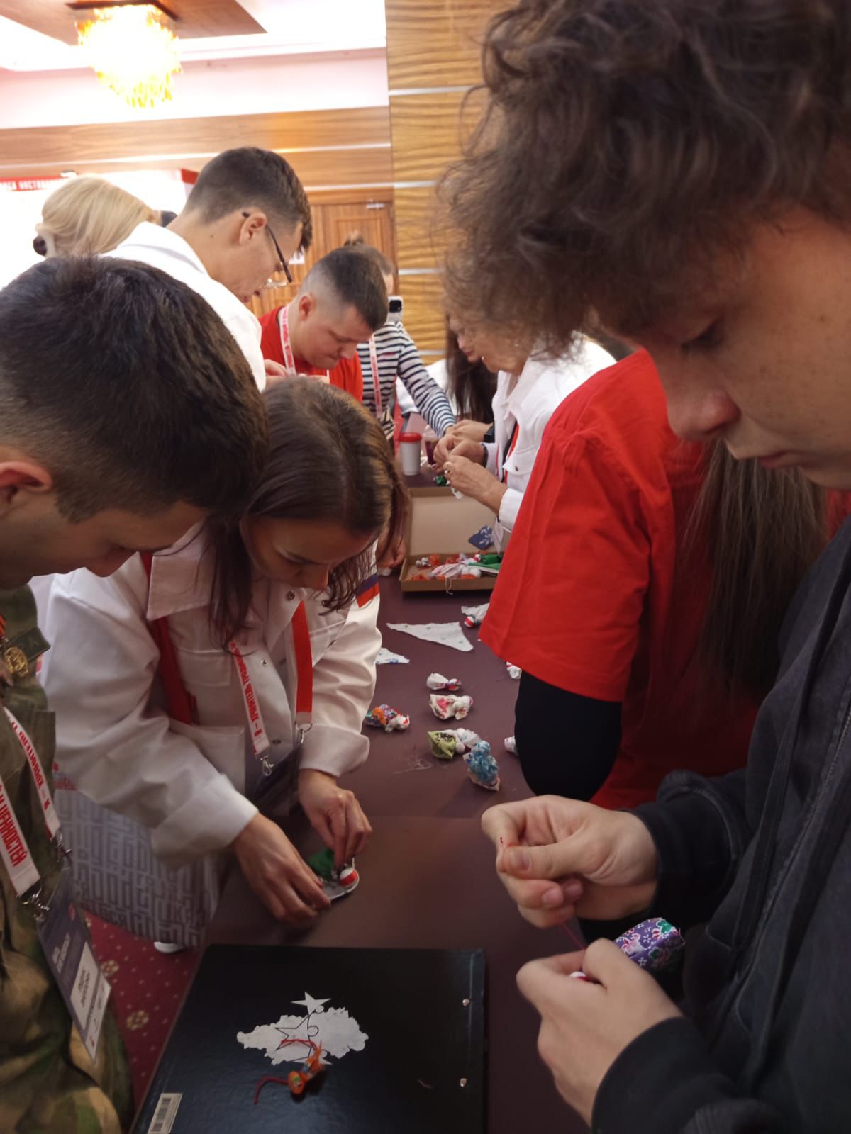 Далее, перед предстоящей защитой идей и практик, с финалистами провели тренинг-мотивацию и желающим предоставили возможность поучаствовать в мастер-классе по изготовлению талисманов-оберегов.