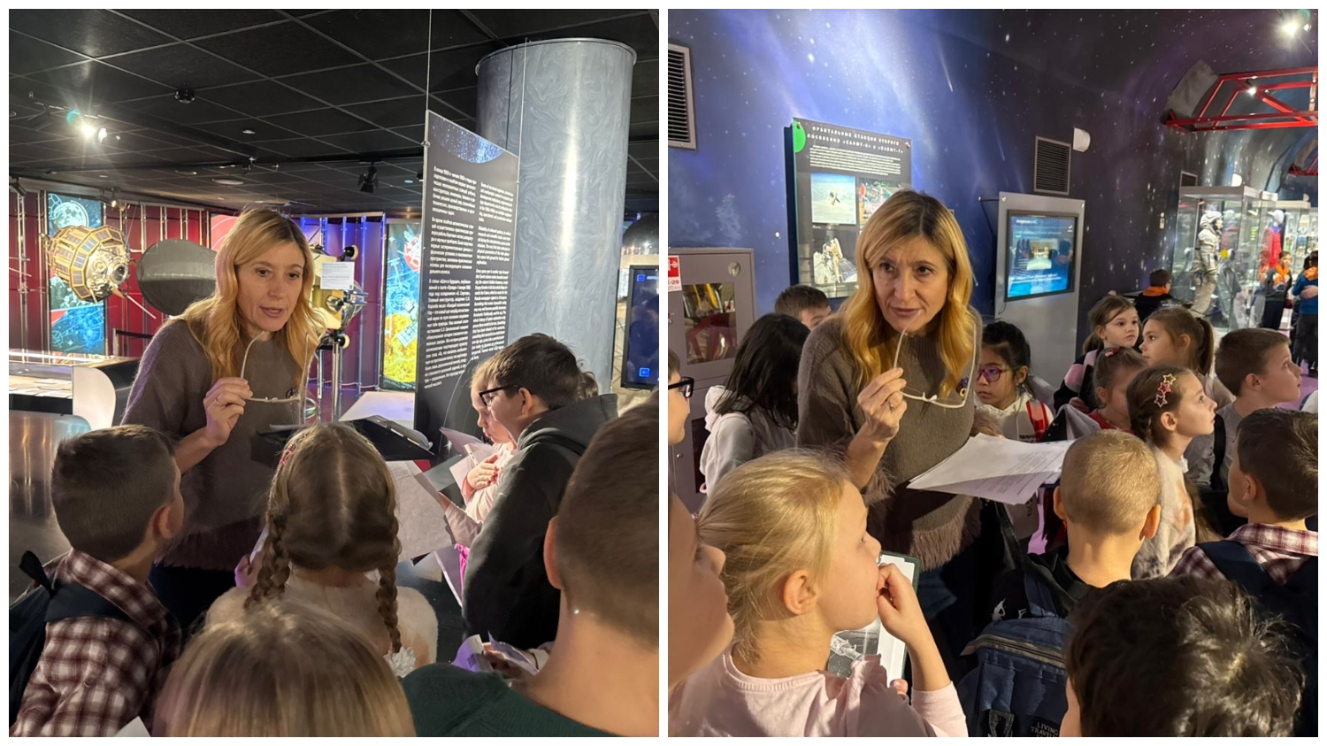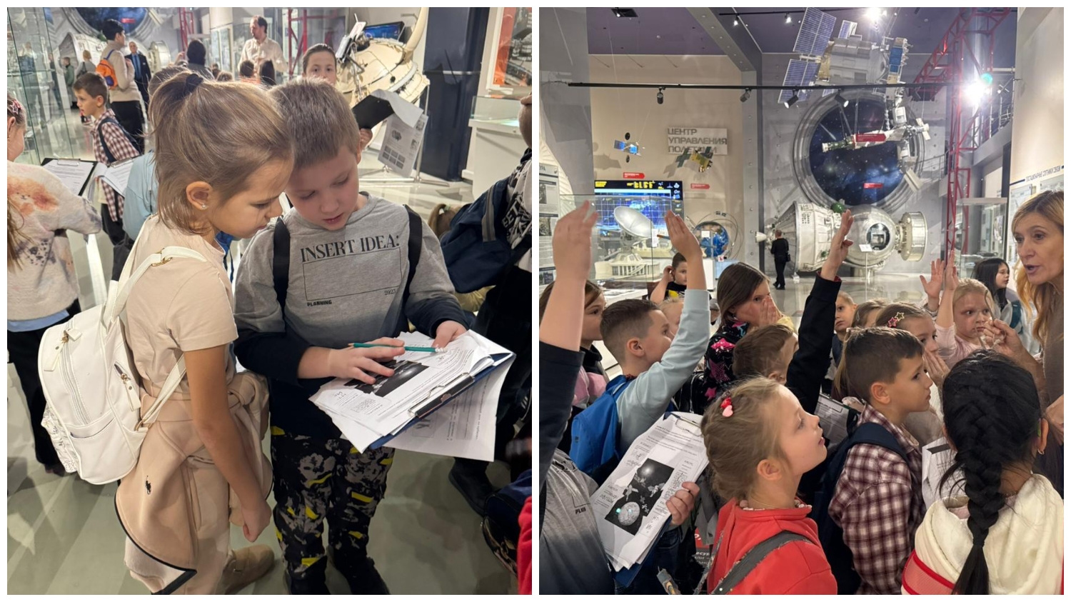 Это интересное, увлекательное погружение в учебную деятельность через узнавание, наблюдение, исследование экспонатов. Дети работали в парах, используя рабочие листы по окружающему миру, русскому языку. Под руководством учителя Сазоновой Л. И. дети были вовлечены в интеллектуально-познавательную работу, результатом такой работы стали письма детей космонавтам, послания в будущее-"Что будет в космосе через 100 лет".