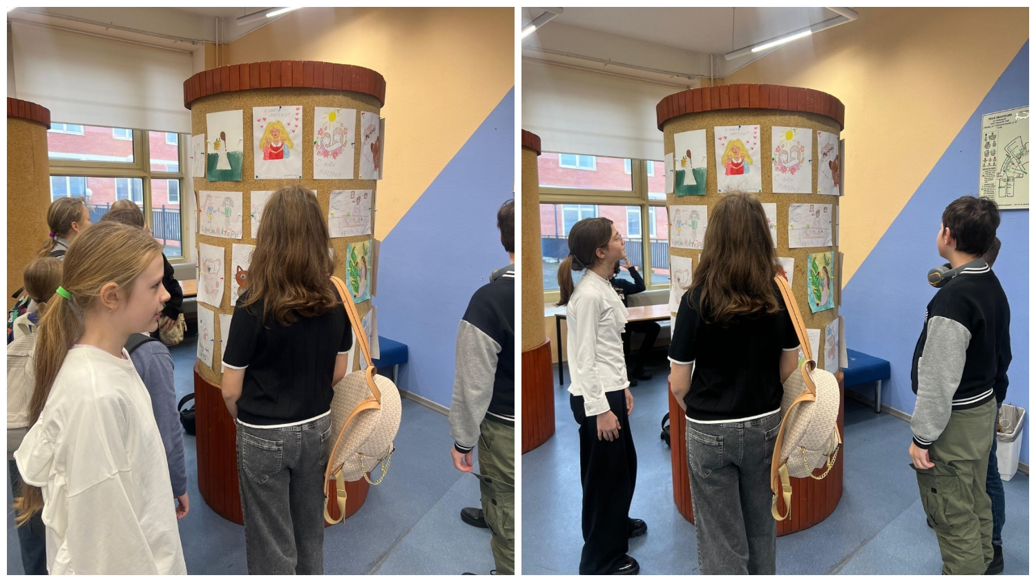 На выставке можно было увидеть яркие и трогательные рисунки, которые передавали эмоции и воспоминания о мамах. Каждая работа — это маленькая история, полная тепла и нежности.